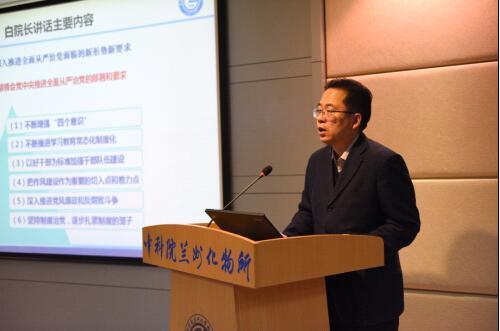 會上,黨委書記、副所長王齊華傳達學習了2017年中科院黨建暨黨風廉政建設(shè)工作會議精神,對中科院院長、黨組書記白春禮,中科院黨組副書記、副院長劉偉平以及中央紀委駐院紀檢組組長李志剛在院2017年黨建暨黨風廉政建設(shè)工作會議上講話精神進行了詳細解讀,并組織與會人員認真學習了《中科院黨組貫徹<中國共產(chǎn)黨問責條例>實施辦法》、《中國科學院黨的建設(shè)工作領(lǐng)導小組2017年工作要點》及《中國科學院2017年黨風廉政建設(shè)和反腐敗工作要點》。