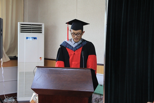 優(yōu)秀畢業(yè)生康建軍博士代表畢業(yè)生發(fā)言。他首先向西北研究院、向各位悉心培育學(xué)生的導(dǎo)師們表示感謝。并寄語(yǔ)尚未畢業(yè)的師弟師妹們,鼓勵(lì)他們“堅(jiān)持一下,再堅(jiān)持一下,也許成功就在不遠(yuǎn)的前方”,最后表示將銘記母校,不管走到哪里,不管在什么樣的工作崗位上都會(huì)承擔(dān)國(guó)家、民族和社會(huì)賦予的責(zé)任。