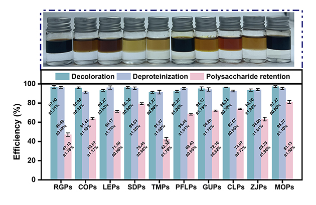 圖2.ATPS@DES對10種植物來源多糖(PDPs)的純化通用性研究