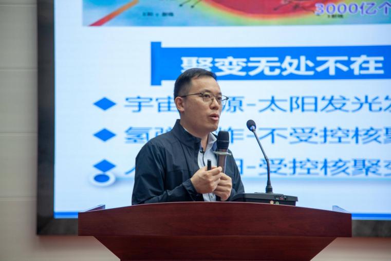 中國(guó)科學(xué)院院士、中國(guó)核學(xué)會(huì)副理事長(zhǎng)、近代物理所趙紅衛(wèi)研究員在蘭州一中作題為《重離子加速器大科學(xué)裝置----探索未知、貢獻(xiàn)社會(huì)》的報(bào)告,介紹核科學(xué)前沿進(jìn)展以及大科學(xué)裝置在科學(xué)研究和社會(huì)發(fā)展中的重要作用。核工業(yè)西南物理研究院院長(zhǎng)助理、聚變科學(xué)所所長(zhǎng)、中國(guó)“環(huán)流三號(hào)”總設(shè)計(jì)師鐘武律研究員在西北師范大學(xué)附屬中學(xué)作題為《托起明天的太陽(yáng)》的報(bào)告,分享了聚變等離子體物理研究與技術(shù)研發(fā)方面取得的創(chuàng)新性成果與技術(shù)突破。中國(guó)原子能科學(xué)研究院物理所張英遜研究員在蘭州市第五十一中學(xué)作題為《撕裂原子核-認(rèn)識(shí)宇宙中物質(zhì)和能量源泉》的報(bào)告,帶領(lǐng)現(xiàn)場(chǎng)師生走進(jìn)理解宇宙起源與演化的世界。每場(chǎng)報(bào)告后均設(shè)置了互動(dòng)問(wèn)答環(huán)節(jié),學(xué)生們積極提問(wèn),與科學(xué)家進(jìn)行深入交流,現(xiàn)場(chǎng)氣氛熱烈。
