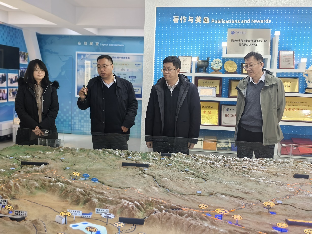 萬士林一行先后參觀了青海鹽湖所科技成果展廳及地質(zhì)與環(huán)境實驗室展覽館,詳細了解了研究所的歷史沿革、科研平臺建設、人才隊伍構成、重要科研成果及在鹽湖資源開發(fā)利用方面的研究進展。