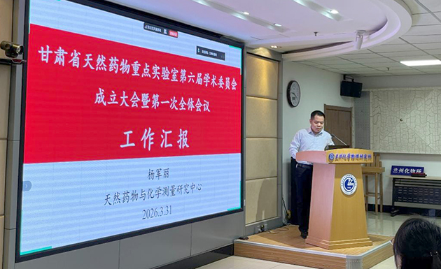 3月31日,中國科學(xué)院蘭州化學(xué)物理研究所甘肅省天然藥物重點實驗室(以下簡稱實驗室)召開第六屆學(xué)術(shù)委員會成立大會暨第一次全體會議在。中國科學(xué)院院士、蘭州化物所學(xué)術(shù)委員會主任委員劉維民,甘肅省科技廳副廳長馬騰宇,蘭州化物所所長周峰、副所長張俊彥出席會議。