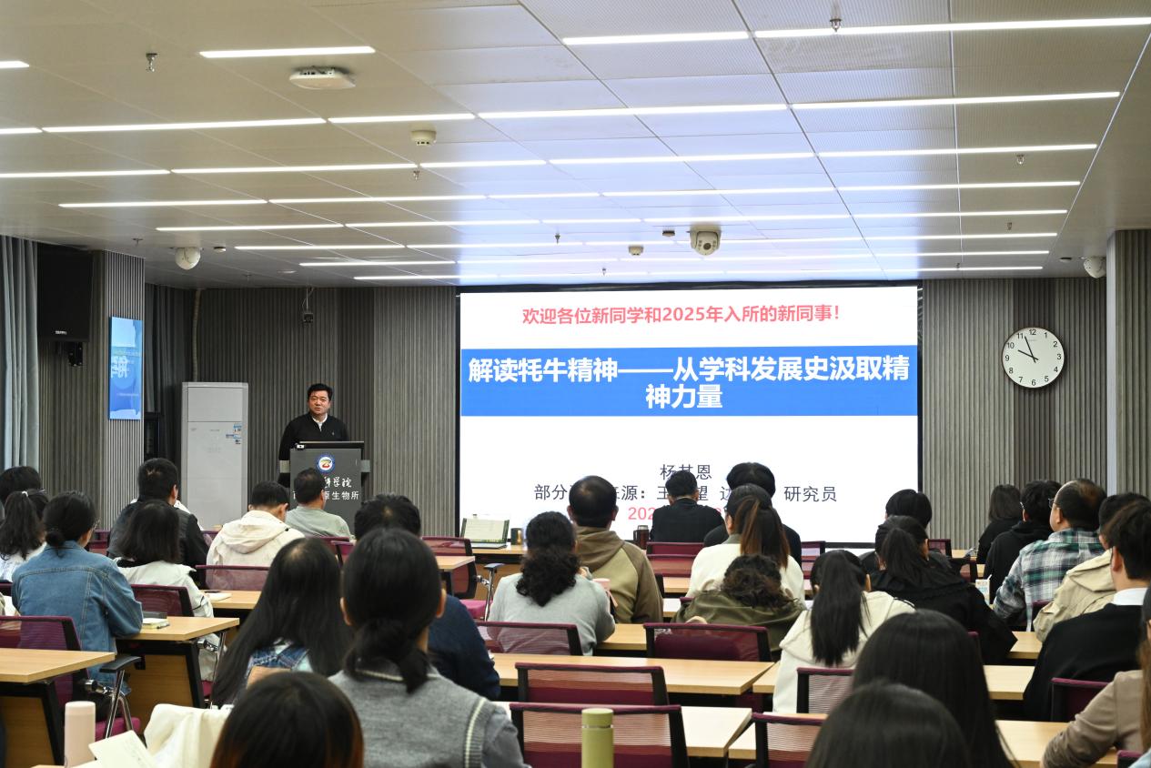 8日上午,入學(xué)典禮在莊嚴(yán)的國歌聲中拉開序幕。陳世龍首先作了“弘揚(yáng)科學(xué)精神,加強(qiáng)學(xué)風(fēng)建設(shè)”專題報(bào)告,強(qiáng)調(diào)了在科研的道路上,傳承好科學(xué)精神,遵循唯真求實(shí)、嚴(yán)謹(jǐn)本分、非所屬者不取、非原創(chuàng)者謙卑的原則和系好學(xué)術(shù)人生的第一??圩拥闹匾浴kS后,楊其恩作了“解讀牦牛精神——從學(xué)科發(fā)展史汲取精神力量”專題報(bào)告,向大家講述了“牦牛精神”蘊(yùn)含的深刻內(nèi)涵,他希望大家能夠從研究所的文化中汲取精神力量,時(shí)刻保持對(duì)科研工作的熱情和敬畏之心、求知欲和好奇心。最后,入學(xué)典禮特邀退休職工李英年研究員作了“熱愛工作 勤勞耕耘——談科學(xué)家精神”專題報(bào)告,他通過分享40多年的工作經(jīng)歷與感悟,告訴大家精神的培養(yǎng)需要關(guān)注細(xì)節(jié)、廣學(xué)博覽、在交流與思考中培養(yǎng)創(chuàng)新意識(shí),以卓然眼界、超群膽識(shí)、堅(jiān)定信念、敢天下之先。