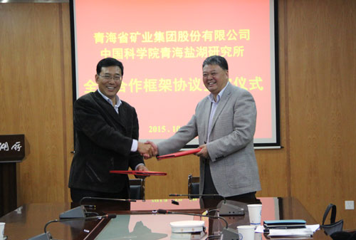 10月10日下午,青海省礦業(yè)集團(tuán)股份有限公司董事長(zhǎng)曹大嶺一行5人到青海鹽湖所訪問(wèn)交流,青海鹽湖所主持工作的副所長(zhǎng)段東平和青海省礦業(yè)集團(tuán)股份有限公司董事長(zhǎng)曹大嶺代表各自單位簽署了全面合作框架協(xié)議。青海省礦業(yè)集團(tuán)股份有限公司副總經(jīng)理蘆滿吉、技術(shù)管理部部長(zhǎng)汪根存等和青海鹽湖所部分中層干部、科研人員參加了交流座談和簽字儀式。