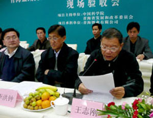 高技術(shù)產(chǎn)業(yè)化示范工程現(xiàn)場(chǎng)驗(yàn)收會(huì)在西寧召開。會(huì)議由中國(guó)科學(xué)院計(jì)劃局副局長(zhǎng)潘鋒主持,青海省人民政府副秘書長(zhǎng)鐘通蛟,中國(guó)科學(xué)院基本建設(shè)局副局長(zhǎng)王志剛,中國(guó)科學(xué)院蘭州分院副院長(zhǎng)楊生榮,青海省海西州人民政府副州長(zhǎng)劉小秦,西部礦業(yè)集團(tuán)公司總裁白永強(qiáng),青海鹽湖研究所所長(zhǎng)馬海州、黨委書記胡彥明和來(lái)自中國(guó)科學(xué)院、青海省政府、海西州政府及各相關(guān)單位的四十多位代表參加了會(huì)議。