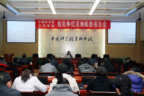報告會由蘭州分院副院長楊青春主持。他在報告會上指出,2011年是國家“十二五”規(guī)劃的開局之年,是中國共產(chǎn)黨成立90周年,是“創(chuàng)新2020”啟動實施的關(guān)鍵之年,也是創(chuàng)先爭優(yōu)活動深入開展、充分展示創(chuàng)先爭優(yōu)活動成果的一年。蔡曉紅委員的報告使我們更加深刻的感受到作為一名中國科學院人的使命感和責任感,在今后的工作中要進一步深入推進創(chuàng)先爭優(yōu)活動,確?!皠?chuàng)新2020”的順利實施,為區(qū)域經(jīng)濟社會發(fā)展做出更大貢獻。