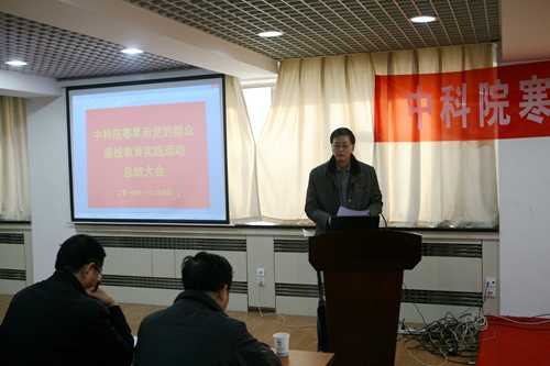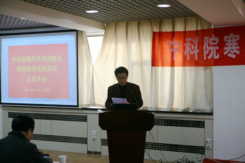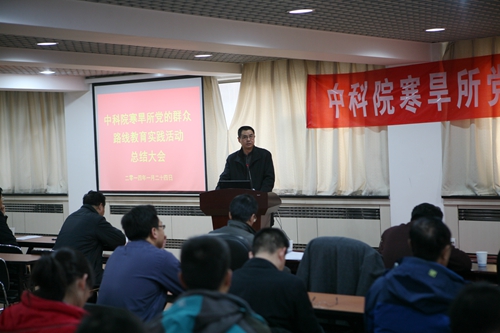 之后,寒旱所黨委書記、副所長(zhǎng)呂世華作了寒旱所黨的群眾路線教育實(shí)踐活動(dòng)總結(jié)報(bào)告。呂世華介紹了寒旱所群眾路線教育實(shí)踐活動(dòng)基本情況、主要做法、取得成效。寒旱所教育實(shí)踐活動(dòng)自2013年7月全面啟動(dòng)以來,所黨委認(rèn)真深入學(xué)習(xí)中央和中科院的精神,按照中央“照鏡子、正衣冠、洗洗澡、治治病”的黨的群眾路線教育實(shí)踐活動(dòng)的總體要求,圍繞中央八項(xiàng)規(guī)定、院“12項(xiàng)要求”和反對(duì)“四風(fēng)”精神,通過學(xué)習(xí)教育、聽取意見,查擺問題、開展批評(píng),整改落實(shí)、建章立制環(huán)節(jié),結(jié)合研究所的工作實(shí)際, 扎實(shí)、有序、高質(zhì)量地推進(jìn)了黨的群眾路線教育實(shí)踐活動(dòng)。通過教育實(shí)踐活動(dòng),進(jìn)一步堅(jiān)定了理想信念、明確了創(chuàng)新責(zé)任,堅(jiān)定了“創(chuàng)新為民”宗旨,進(jìn)一步促進(jìn)了作風(fēng)轉(zhuǎn)變、提升服務(wù)能力,強(qiáng)化了“務(wù)實(shí)求真”作風(fēng),進(jìn)一步加強(qiáng)了科研管理和廉潔從業(yè)風(fēng)險(xiǎn)防控體系建設(shè),強(qiáng)化了制度建設(shè),初步形成踐行黨的群眾路線的長(zhǎng)效機(jī)制